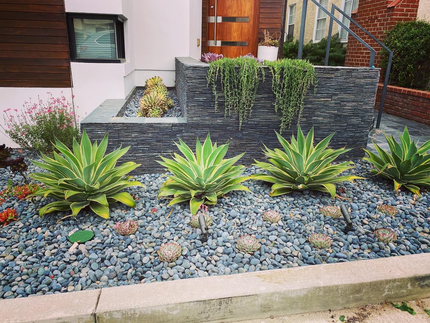 San Agustin Landscape begins by removing turf or high-water plantings, grading the soil to prevent runoff, and installing weed barriers beneath gravel or mulch layers. We arrange plants in clusters based on water needs, placing drought-tolerant varieties in exposed zones and slightly more water-dependent species near drip lines or shaded areas in South Bay properties.